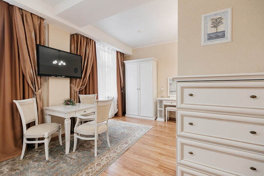 Гостей здравницы ждут комфортные номера различных категорий: стандарты с зонами для чаепития, студии с кухнями, джуниор сюиты с зоной для отдыха, просторные двухкомнатные люксы и роскошные аппартаменты.